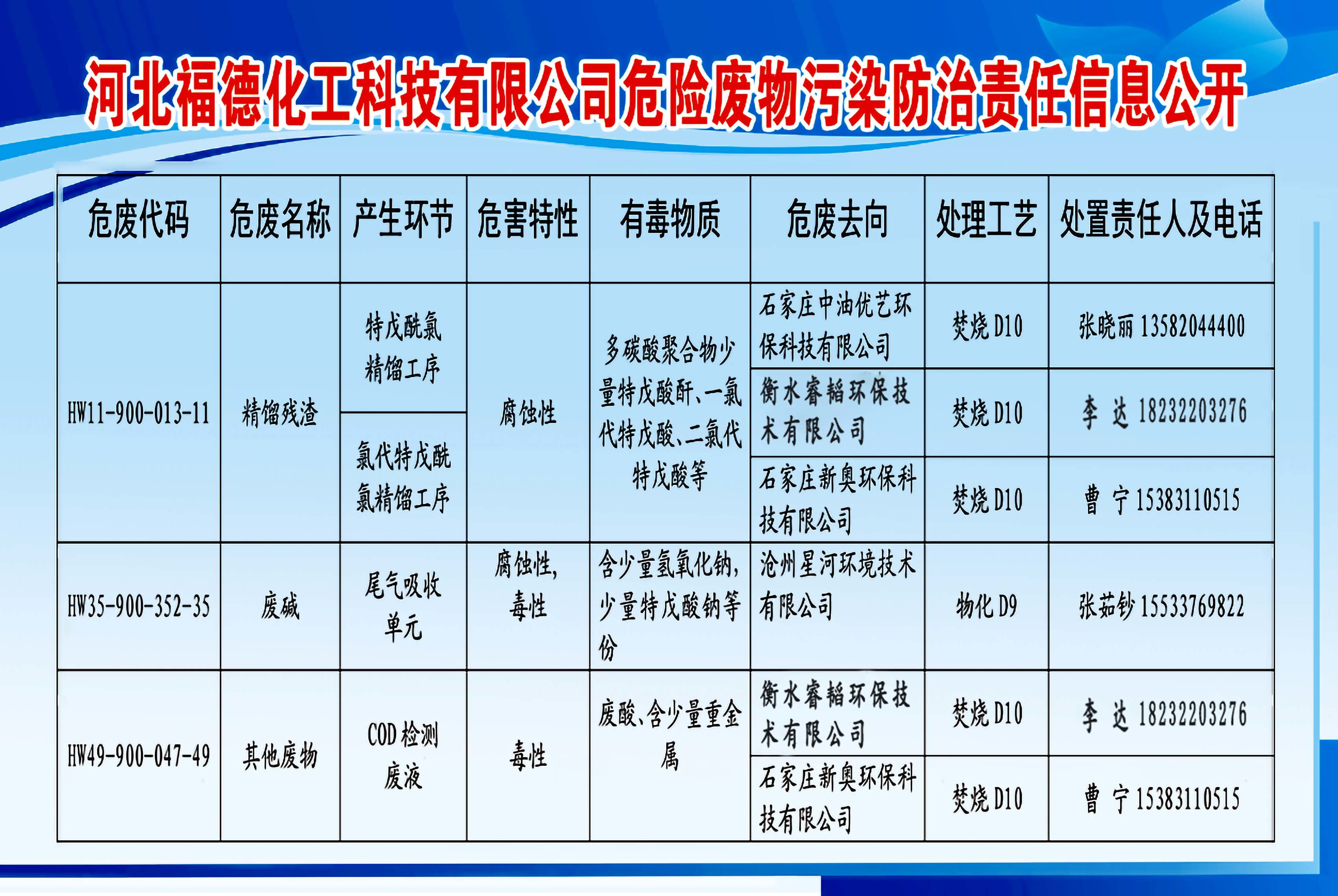 河北福德化工科技有限公司危险废物污染防治责任信息公开